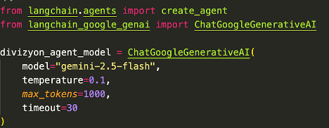 Model oluşturma aşamasında, Langchain’in sunduğu herhangi bir servis sağlayıcıyı (provider) tercih edebilirsiniz. Ben bu örnekte Gemini modelini kullanacağım.