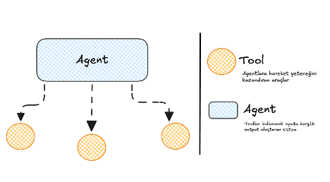 Araç (Tool): Agent’ların işlem ve hareket kabiliyeti kazanmasını sağlayan, fonksiyon tabanlı yazılım modülleridir.