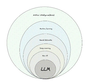 Yapay zekâ, ChatGPT’nin 2022 yılında yayınladığı büyük dil modeli ile uzun süredir devam eden durağan dönemden yavaşça çıkmaya başladı. Burada ana kavramı gözden kaçırmamak önemlidir: Yapay zekâ, günümüzde herkesin dilinde olan büyük dil modellerinden ibaret değildir. Konunun daha iyi anlaşılması için aşağıda bir diyagram paylaşıyorum, inceleyebilirsiniz.